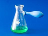 As stated above, the reaction we will be observing produces hydrogen gas. In order to determine that the mass of reactants and products has been conserved, we need a method by which we can collect and determine the mass of this hydrogen gas. In order to accomplish this task successfully, you will use a side-armed Erlenmeyer flask: