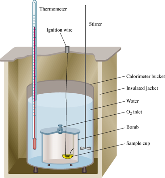 Getting back to calorimetry, the other type of calorimeter is a constant volume or "bomb" calorimeter. The "bomb" part comes from the fact that since the volume is constant the pressure inside the calorimeter can be quite high. If not watched carefully this can lead to disasterous results.