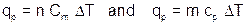 where n is the number of moles of material, Cm is the molar heat capacity and DT is the change in temperature (either in K or °C; since it’s a change, it doesn’t matter). Alternatively, this can be expressed for the mass of the material as: