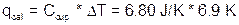 The amount of heat (qcal) absorbed by the cup is easily found, since qhw and qcw can be calculated using Equation 5. To determine qhw, substitute the mass of the hot water, the specific heat of water (Table 1), and the temperature change for the hot water (DT) into the equation. The qcw is found the same way. Once qcal is found, Ccup can be calculated from Equation 7.