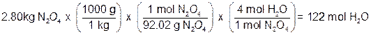 Based on moles of Dinitrogen Tetraoxide (N2O4)