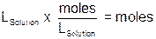 Since we are dealing with solutions, the concentration is expressed in molarity, a term used in our Conservation of Matter experiment. Recall that molarity (M) is defined as the number of moles of solute in one liter of solution. If we know the volume of solution we can then calculate the number of moles present by multiplying the volume in liters by the molarity of the solution: