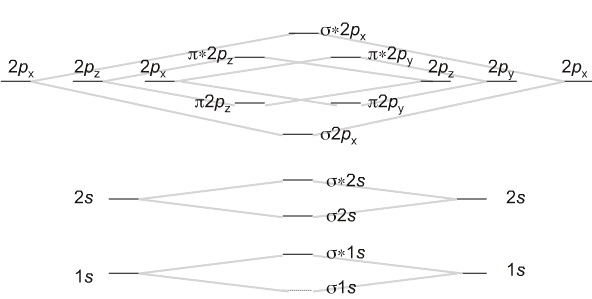 Each Nitrogen atom has 7 electrons and an electron configuration of 1s2 2s2 2p3 . This yields a total of 14 electrons to work with. How many molecular orbitals can form? Which molecular orbitals will form? Which orbitals are filled first? What is the bond order for N2?