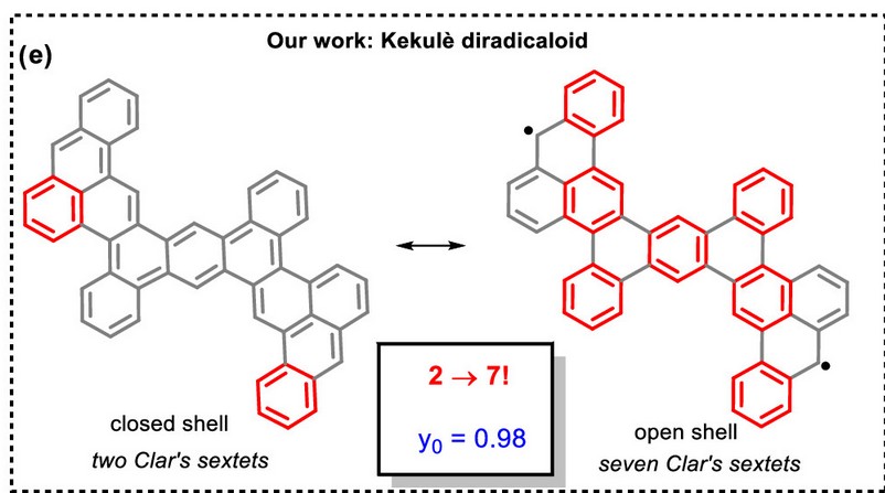 We strategically design, synthesize, and characterize organic diradicaloids and triradicaliods, a class of highly reactive and unstable molecules. Our approach focuses on enhancing stability by leveraging Clar’s sextet rule, incorporating heteroatoms, and conjugated scaffolds for electronic stabilization, and introducing bulky substituents to protect unpaired electrons, thereby preventing dimerization through kinetic stabilization. For example, we take advantage of electron-rich alkynes through peri-annulation reactions to construct carbon-based and nitrogen-doped diradicaloids. To unlock their full potential, we employ advanced characterization techniques, including room- and variable-temperature EPR, SQUID, CV, UV-Vis, NMR, and computations, to probe their unique electronic and spin properties. These extraordinary molecules hold immense promise for spintronics, semiconductors, chemical sensors, detectors, batteries, and magnetic materials. Additionally, we explore porous PAHs by functionalizing pyrene, leading to materials with remarkable photophysical properties.