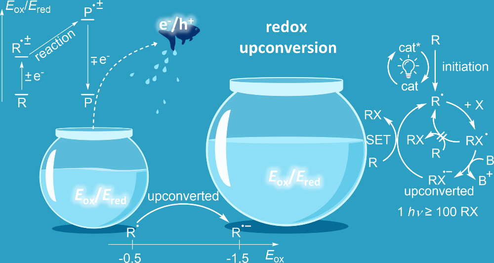 Using an electron as a catalyst is appealing, both conceptually and practically. Not only are electrons cheap and abundant, but they are also traceless and recyclable, so the use of electrons as catalysts is an inherently green chemical strategy. Many chemical transformations are made possible by electron transfer, as illustrated by the remarkable increase in the applications of electrochemical and photoredox methods in chemistry. For example, in several documented cases, a single absorbed photon can lead to the formation of >100 molecules of the product, behavior known to originate from chain processes. We explore the underlying reasons for this efficiency, identify the nature of common catalytic chains, and highlight the differences between HAT and SET chains. Our goal is to illustrate how the phenomenon of redox upconversion serves as a thermodynamic precondition for electron and hole catalysis.