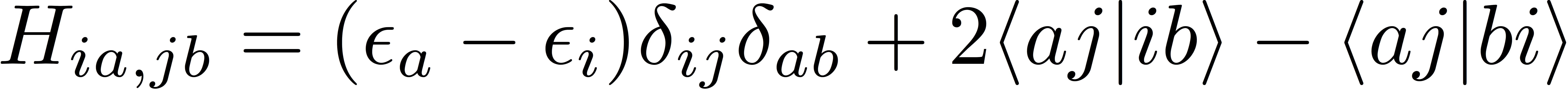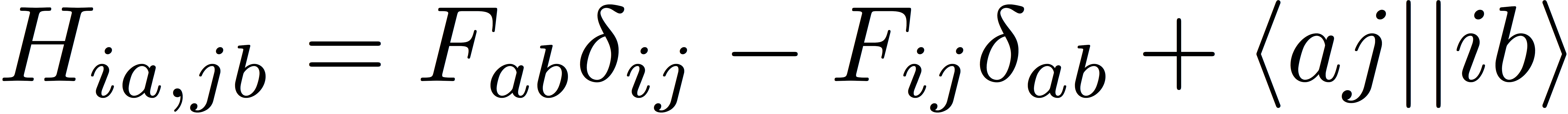 where F represents the Fock matrix, and 〈aj||ib〉 represents an antisymmetrized electron-repulsion integral in physicists' notation. Recall that the Fock matrix for restricted Hartree-Fock theory is diagonal in the MO basis, so this expression simplifies sligthly: