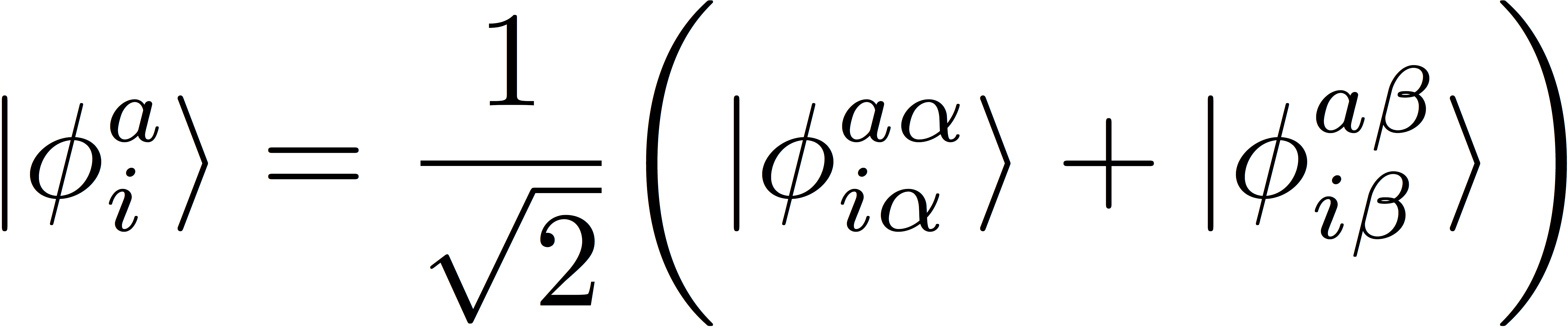 Here, the symbol φia represents a Slater determinant that is singly excited relative to the reference determinant, and the indices i and a represent a spin orbitals that are occupied and unoccupied (virtual) in the reference, respectively.