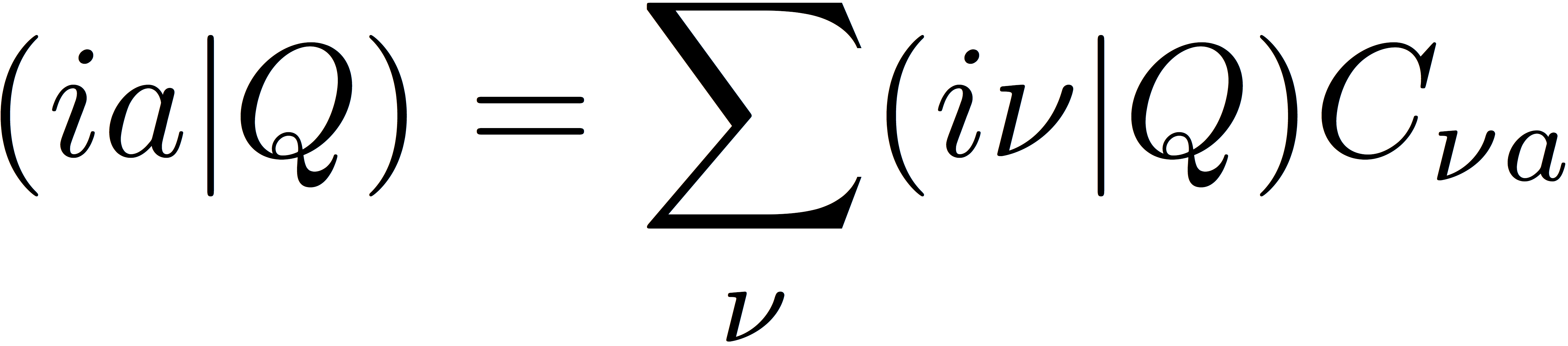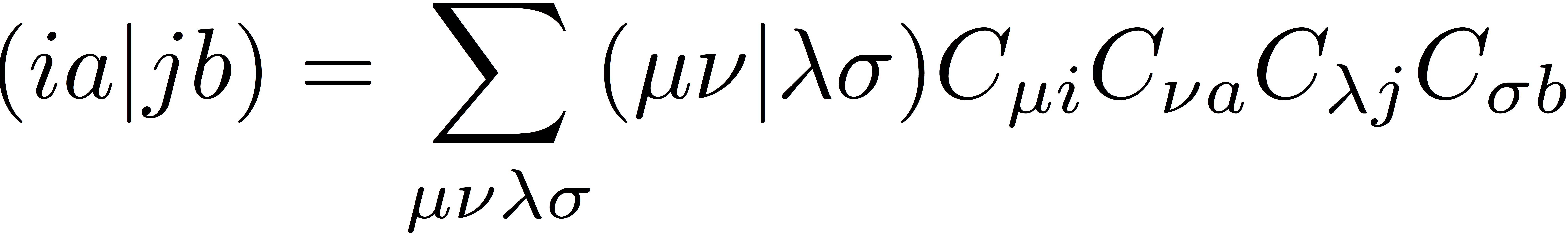 Here, the transformation matrix, C, is the same orbital transformation matrix determined through the Hartree-Fock procedure. Note, however, that this transformation is given here in a very naive form. As written, this transformation would scale with the eigth power of system size! Instead, one should perform a series of partial transformations that each scale only as the fifth power of system size: