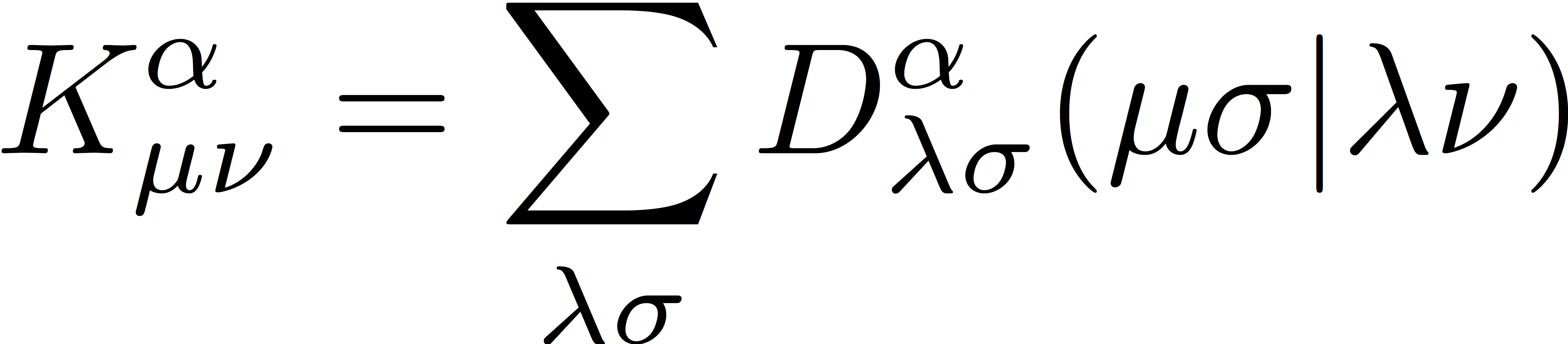 Here, σ represents the spin for the electron (α or β), α represents the percentage of exact Hartree-Fock exchange, Kσ,ω represents an exchange matrix generated with the operator erf(ωr12)/r12, as opposed to the usual Coulomb operator, 1/r12, and Vxc,α represents the exchange-correlation potential matrix, which is comprised of integrals over derivatives of the exchange-correlation functional. For more detail as to what actually goes into Vxc,α, see here.