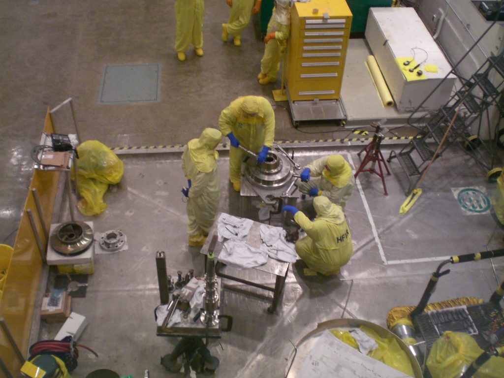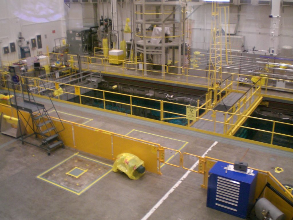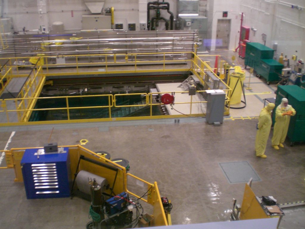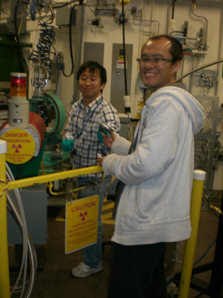 Pictures from ORNL trip Dr. Latturner at the HB3A 4 circle single crystal diffractometer Xiaowei Ma and Dr. Huibo Cao, who runs the instrument The reactor pool, where the neutrons are generated