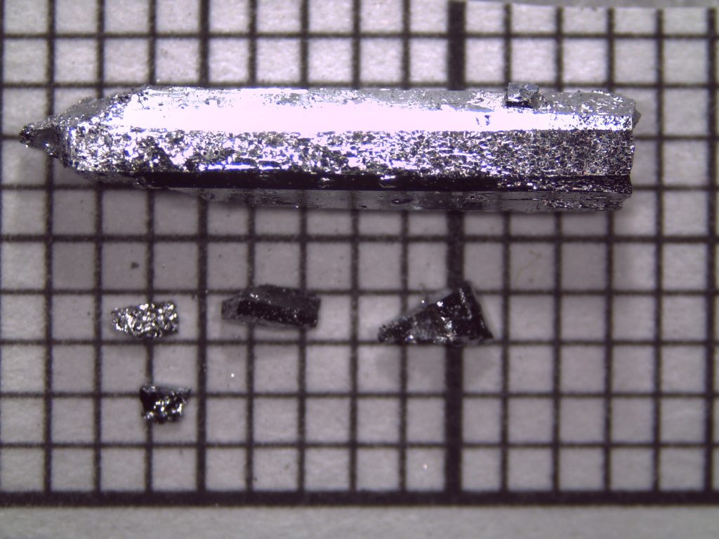 Low melting metals such as gallium, indium, and tin have been well-explored as fluxes. We are investigating combinations of different metals to create unique reaction solvents for new materials. In many cases, combining two metals at specific ratios results in a lowered melting point (for instance, eutectic formation); this enables high-melting metals that have not been previously considered as fluxes to be used. Our investigation into metal flux reactions includes the production of new intermetallic phases with interesting electronic and magnetic behavior or with potential use as optical or thermoelectric materials. This research is funded by the National Science Foundation.