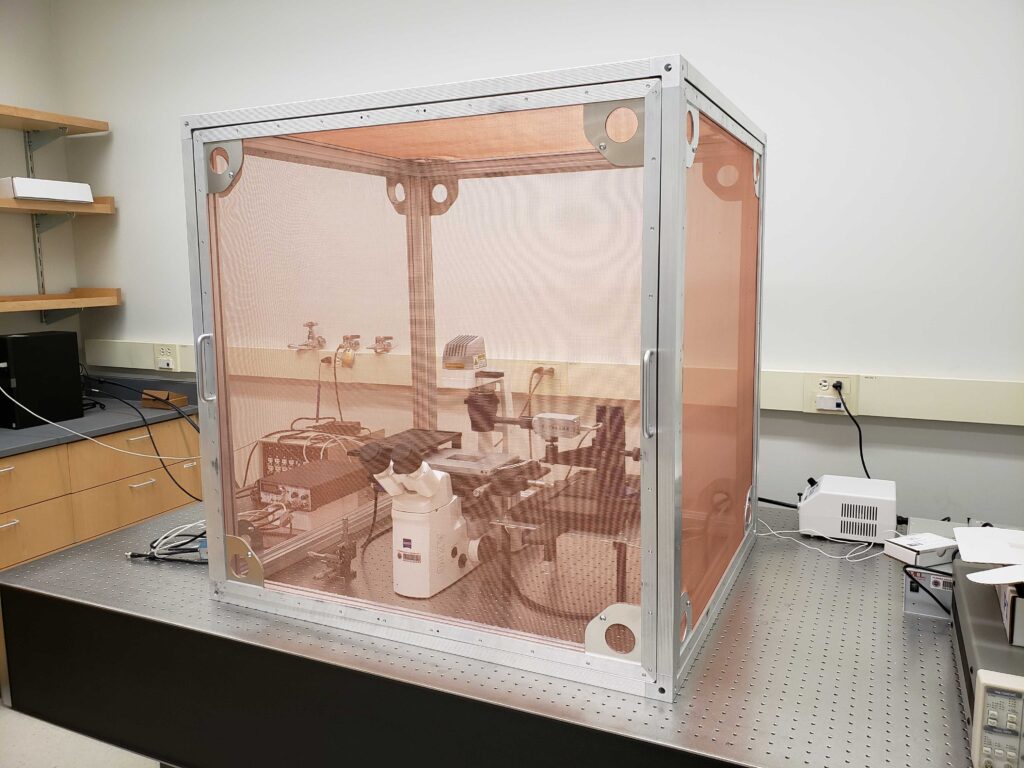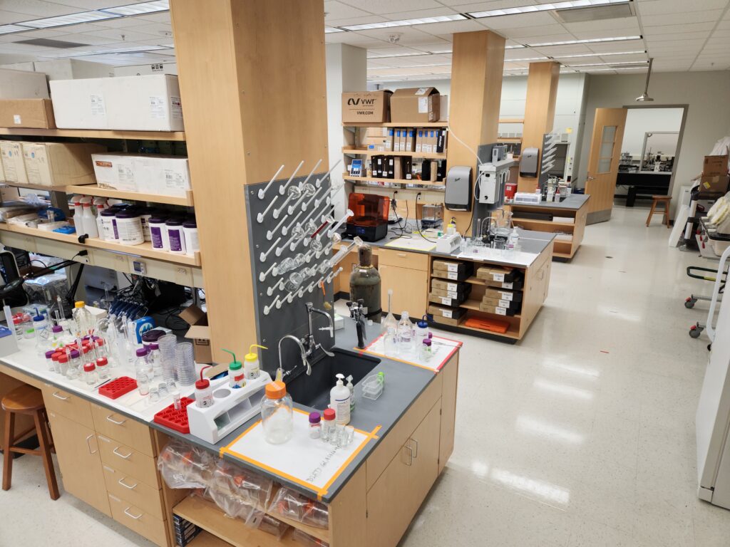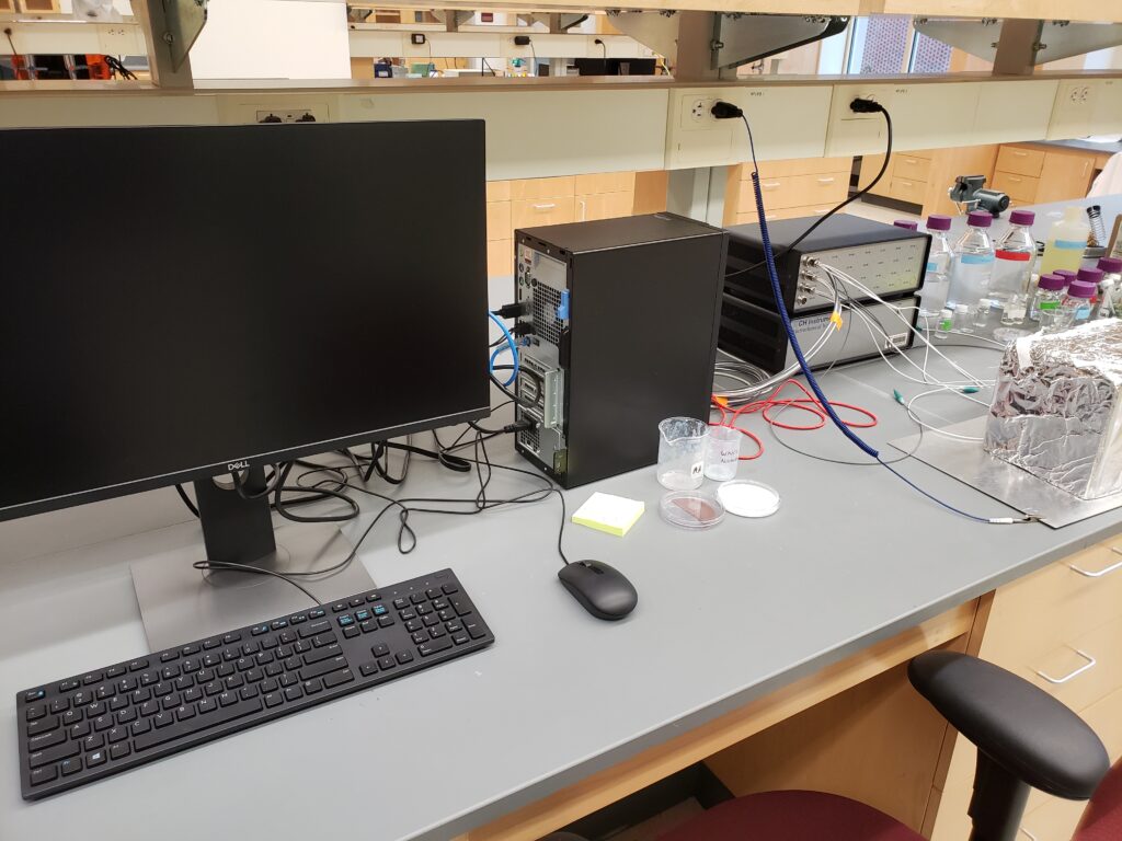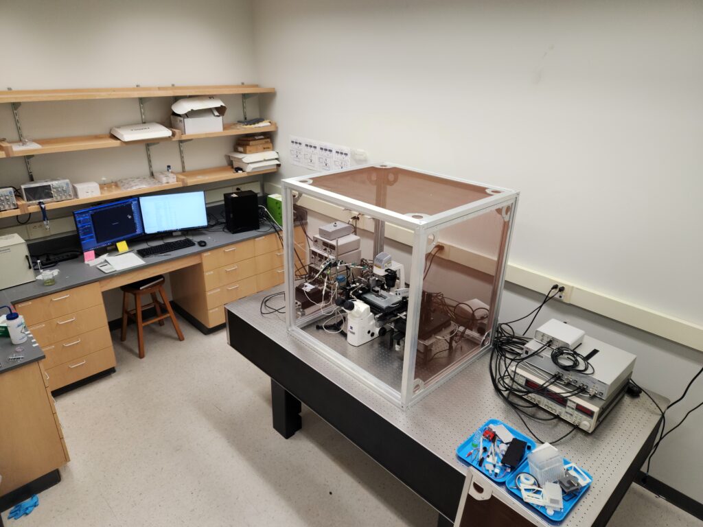 Main lab in fall 2019 during lab set up.Main lab in fall 2023. Main lab in fall 2019 during lab set up. Main lab in fall 2023. Building a scanning electrochemical microscope in the low-noise instrument room in fall 2019.Scanning electrochemical microscope in the low-noise instrument room in fall 2023.