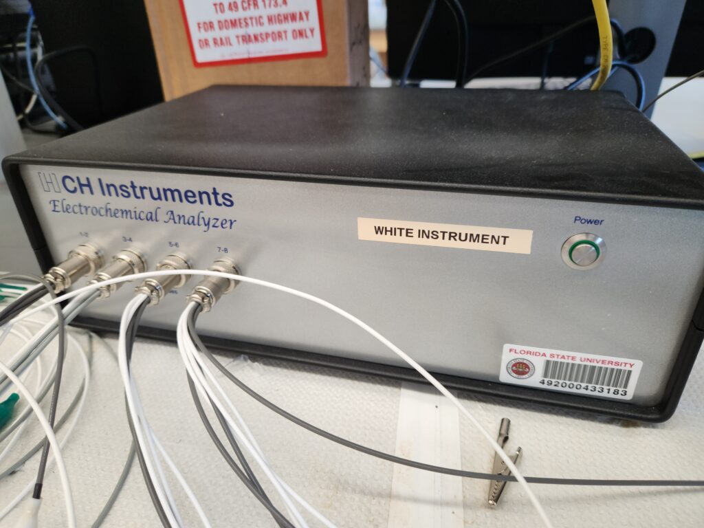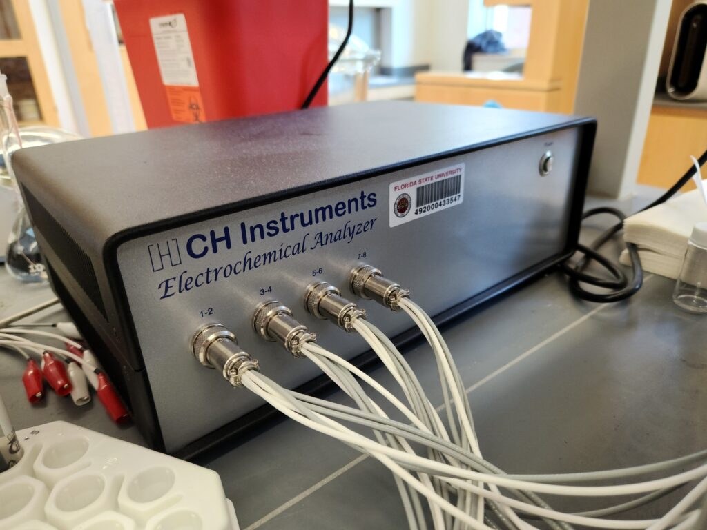 CH Instruments Potentiostat 2CH Instruments 8-Channel Potentiostat (2)UV-Vis SpectrophotometerWater PurifierpH MeterFridges/FreezersRotator for Rotating Disk ElectrodeGlove BoxCentrifugeCell Counter