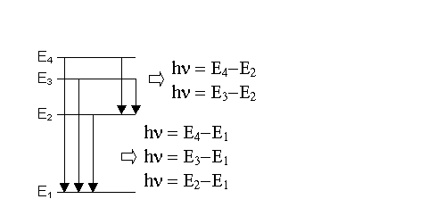 E = -2.18 x 10-18J x 1/n2,  where n =1, 2, 3, 4, 5, etc.