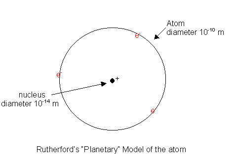 For the nucleus to repel the positively charged alpha particle, it must be positively charged.  According to Rutherford, then, the space around the nucleus must be taken up by the very light, negatively charged, electrons.  The characteristic thing about the atom of an element was therefore not its atomic mass, but its nuclear charge, also called its atomic number.  Rutherford visualized these electrons spinning around the nucleus much as planets spin around the sun, hence his model of the atom was called the “planetary model”.