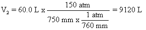 Lets look at number 55, page 182 for example. P1 is 150 atm, V1 is 60.0 L, P2 is 750.0 mm Hg (or torr). What is V2?