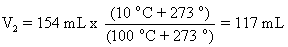 So lets look at problem 57, page 182. V1 is 154 mL, T1 is 100 oC, T2 is 10 oC. What is V2. Recognize here that the temperature must be changed to Kelvin by adding 273 oC.