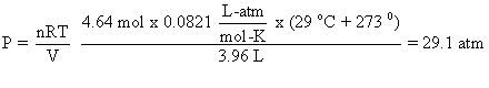 Lets do an example problem. Calculate the pressure in a tank that contains 4.64 mol of CO in a 3.96-L tank at 29 oC. Setting up the problem: