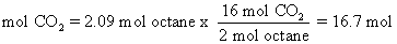 Here the ratio 16 mol CO2/2 mol octane is the chemical equivalency used as the conversion factor.
