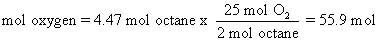 The first thing one must do is write the proper balanced equation. In this case we are talking about combustion of octane. From the balanced equation, one can determine the relative number of moles reacting, giving in essence a conversion factor or chemical equivalency between each component of the reaction.