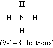 It takes a lot of energy to break up this hydrogen bonding network. Also, the tetrahedral-like structure of water when it is ordered in an ice structure (see figure 5.4) takes up more volume than if a few bonds were broken and the molecules could nestle closer to one another. This arrangement explains why water expands when it freezes (or contracts when it melts). Hydrogen bonds have energies from about 4 kJ/mol to 25 kJ/mol. Compare these values to the values of covalent bonds in table 4.1, page 121, where covalent bonds vary from 150-450 kJ/mol. The normal H-O covalent bond energy is 459 kJ/mol. Hydrogen bonds are very important in the structure of large biological molecules such as proteins and nucleic acids. The energy of one bond is not very great, but in these large molecules there are many such bonds and collectively they contribute to the overall structural stability of these molecules. Polyatomic ions In discussing solution of ionic substances, we note that many of the minerals we find in water consist of ions that contain more than one atom. We call such ions polyatomic ions. So at this point we need to discuss some additional structural information. Ions are electrically charged species. The atoms of a polyatomic ion are being held together by covalent bonds, but the group of atoms has an excess or deficiency of electrons. You might think of the group as a charged molecule. A few polyatomic ions are positively charged. (Positively charged ions are called cations). The only example we will cite for the moment is NH4+, the ammonium ion. Rules for Lewis structures are the same, except that when there is a positive charge, one must remove a valence electron. Draw the Lewis structure of ammonium ion.