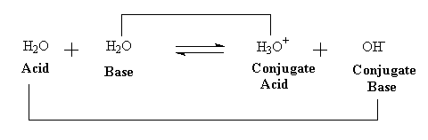 Chemistry 1020Lecture 17Notes Last period we introduced the concept of molar concentration, abbreviated M, which stands for moles/L. Now lets apply that to the discussion of the quantity of acid in a solution. We express the quantity of acid simply as the molar concentration of H+, abbreviated [H+], where the square brackets indicate molar concentration. Recall that H+ is really a hydrated proton, and could also be represented as H3O+. What is the maximum concentration we might expect to have of hydrogen ion in aqueous solution? Clearly there cant be more H3O+ species than there are water molecules to begin with. So we might first ask, what is the molar concentration of water, i.e. [H2O]? 1000 g/L x 1 mol/18.0 g = 55.6 mol/L or 55.6 M [H3O+] must be less than this because there must be some kind of anion in the solution to neutralize the positive charge. Therefore the maximum acid concentration is probably somewhere about 20 M. What would be the minimum concentration of H+? At first thought, you might be tempted to say zero, but that is not the case because of the following reaction that water undergoes: H2O + H2O ---> H3O+ + OH- This reaction represents the proton from one water molecule that is hydrogen bonded to a neighbor actually being transferred to the neighbor. This reaction is more easily explained using the Bronsted-Lowery definition of an acid mentioned earlier. One of the water molecules is acting as an acid (a proton donor), and the other as a base (a proton acceptor). After the transfer the conjugate base of the donor water is formed (OH-), and the conjugate acid of the acceptor water is formed (H3O+). The proton can be transferred back, so the reaction can actually occur in both directions, as illustrated in the following equation:
