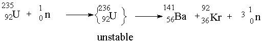 This series of reactions produces neptunium and plutonium. In a search for other transuranium elements by this process in 1938, German scientists Otto Hahn and Fritz Strassman found what they identified as barium as a product, but they questioned the identification because it was so unexpected. They told a former colleague, Lisa Meitner, about the observation. She had fled Germany to Sweden, and she told her nephew, Otto Frisch, who repeated the experiment at the Niels Bohr institute in Copenhagen. They concluded that the unstable nucleus formed when a neutron was absorbed had split in two, a process designated nuclear fission. It turns out it was not the uranium-239 undergoing fission, but the small amount of uranium-235 isotope that underwent reactions such as: