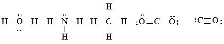 Go through examples: H2, Cl2, H2O, NH3, CH4, CO2, CO, SO2, SO3, NO, O2, O3