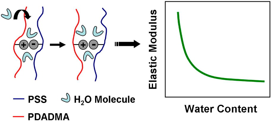 H.H. Hariri, A.M. Lehaf, J.B. Schlenoff*; Macromolecules, 45, 9364-9372 (2012), Mechanical Properties of Osmotically Stressed Polyelectrolyte Complexes and Multilayers: Water as a Plasticizer. DOI: 10.1021/ma302055m