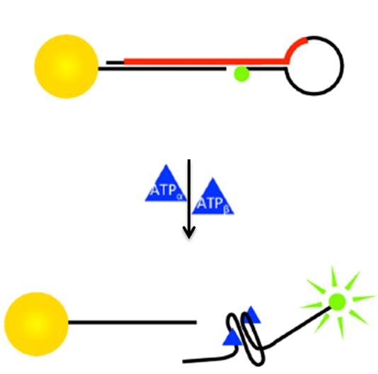 Aptamers are nucleic acid sequences with strong, selective affinities for binding target molecules. They have become popular tools in nanotechnology as they offer better selectivity than anti-bodies while maintaining high levels of target-bound stability. More importantly, nucleic acid aptamer strands are easily modifiable, making them applicable to a variety of chemical instrumentations and techniques. Here in the Strouse lab, we are interested in employing these aptamers in designing optical sensors for target detection. We construct molecular beacon-style optical probes for small-molecule detection using the aptamers appended to gold nanoaprticles. These concentration-based optical assays combine the distance-based theory for energy transfer, NSET, with conformationally-active aptamers. In our work with the ATP DNA aptamer, we show that this molecular-beacon based approach is useful for spanning several magnitudes of target concentration detection (pM-mM) by relocating the specific aptamer sequence in the stem-loop configuration. In addition, by studying these systems optically, site-specific binding information is available that is inaccessible by NMR, EPR, electrochemical detection, etc. The future of this work entails multiple flourescent-dye labels on the aptamers to triangulate distal changes in the nucleic acid's conformation.