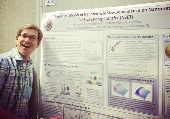 Ryan presented a poster on his work with "Theoretical Model of Nanoparticle Size-Dependence on Nanometal Surface Energy Transfer (NSET)" during the national Gordon Conference at Mount Holyoke College in South Hadley, Massachusetts, in June of 2014.