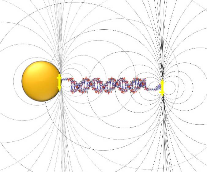 400 Å, by replacing the accepting molecule with a metal nanoparticle. The extension can be attributed to an enhanced coupling of the electromagnetic field of the dipole to that of the metal nanoparticle. NSET accurately predicts the extent of this coupling by incorporating the size dependent optical and electronic properties of the accepting nanoparticles. Our group has shown the usefulness of NSET as a molecular ruler by observing conformational changes in Hammerhead RNA and is currently investigating uses in small molecule detection utilizing aptamers.